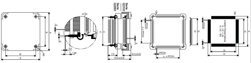 Q2101 系列 金 0.5 µm QFP 插座頂部和 4 顆 M2x6 螺釘